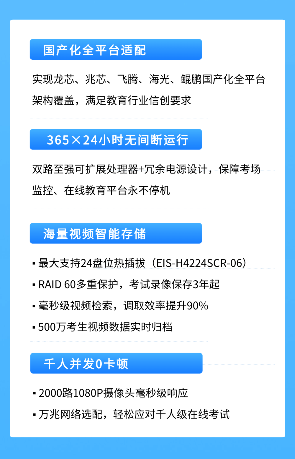 特控以雙路高性能服務器集群為核心,打造新一代智能監考系統,單臺設備即可實現: