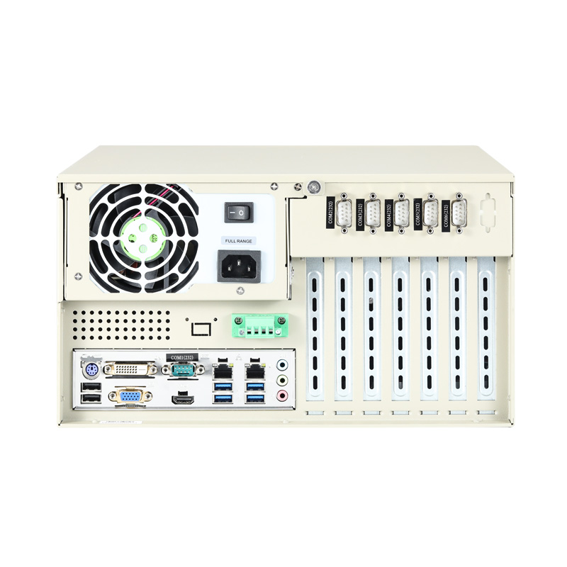 穩(wěn)定可靠 : 全金屬設計,機箱可抗接觸式4KV強電磁干擾;AC 90-264V 寬壓輸入高性能 : 支持2/3/4/6/7/8/9代 LGA1155/1150/1151 Intel® Core? I3/I5/I7全系列CPU兼容性強 : 支持MINI-ITX、Micro-ATX、ATX等全系列工業(yè)板卡接口豐富 : 2*LAN(Intel網(wǎng)口),6*COM,6*USB,VGA+DVI, 支持同步和異步,支持1*3.5寸和1*2.5寸硬盤位,1* PCIEx16,1* PCIEx4,2* PCI